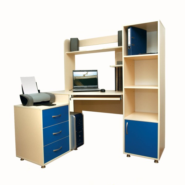 Комп'ютерний стіл «Ніка 36» - багатофункціональний і зручний стіл. Шляхом об'єднання різних частин меблів в конструкції столу, забезпечується економія простору кімнати. Полиці стелажа, висувні шухляди глибокі та місткі. Відкривається можливість придумати свій зручний варіант розташування комп'ютерної техніки, літератури, особистих речей.
