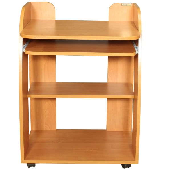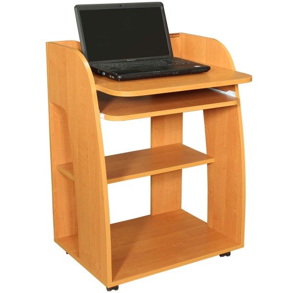 Прямий портативний комп'ютерний стіл на пластмасових колесах. Стіл оснащений двома полицями та полицею під клавіатуру. Лише 600 мм завширшки на 4-х пластмасових колесах.