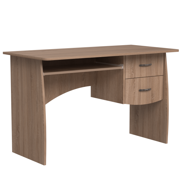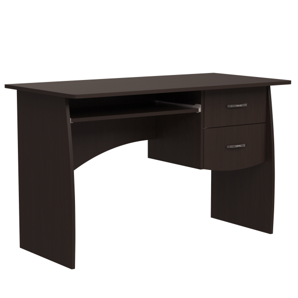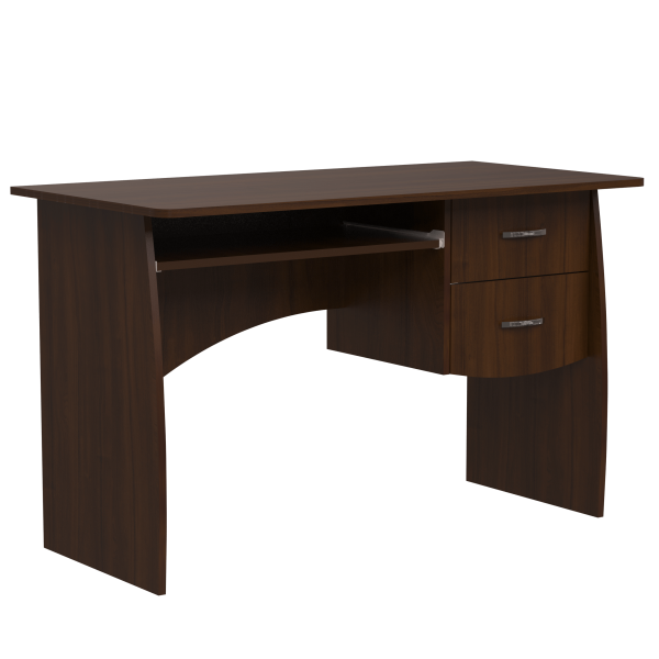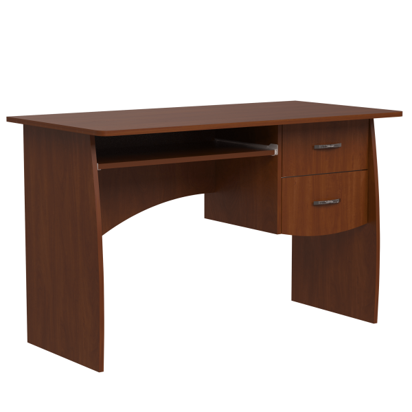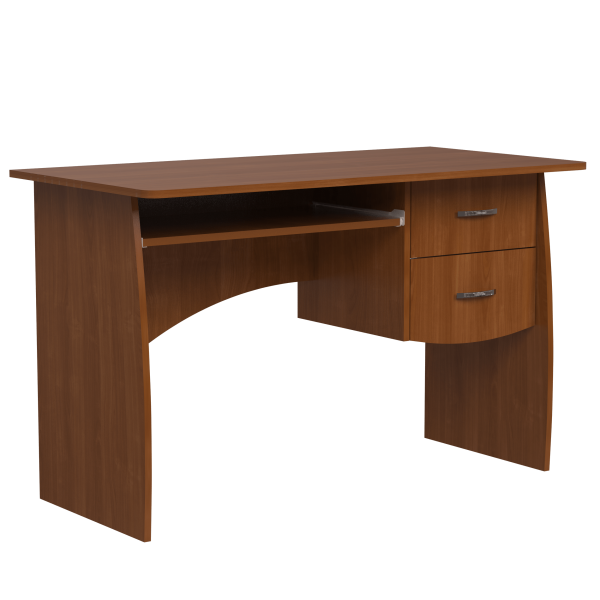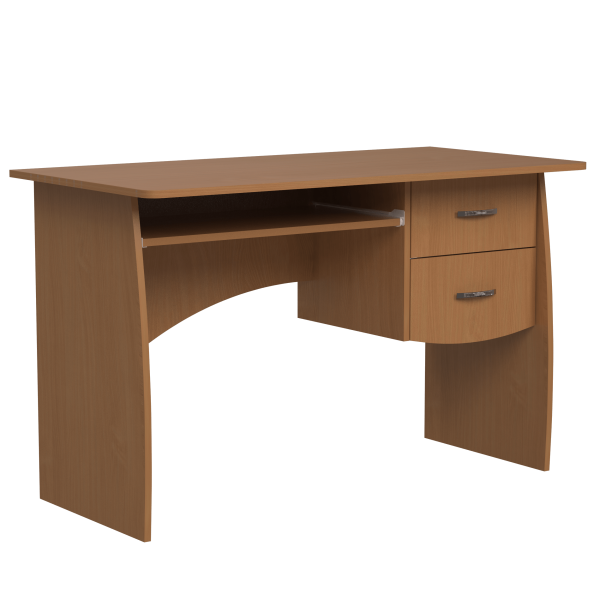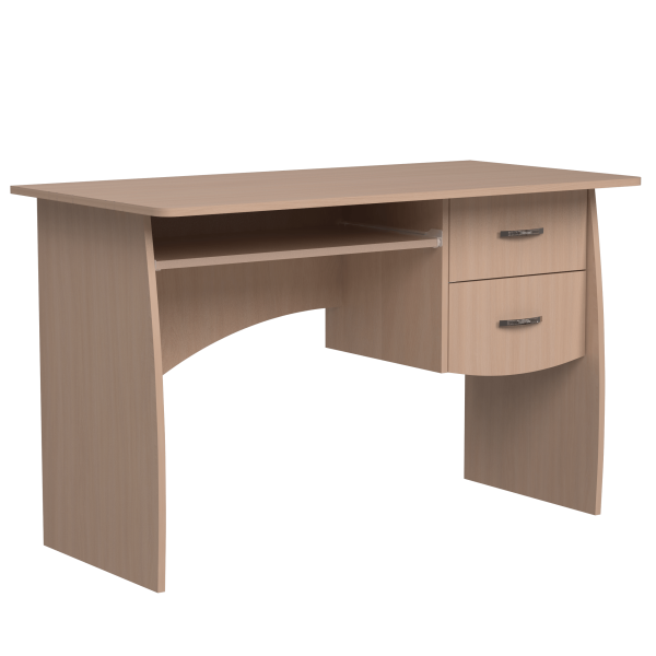 Класичний прямий комп'ютерний стіл, 1200 мм завширшки. Блок з двох шухляд знаходиться поряд з полицею під клавіатуру. Ніжки стола мають слегка закруглену форму. Задня стінка стола - фігурна.