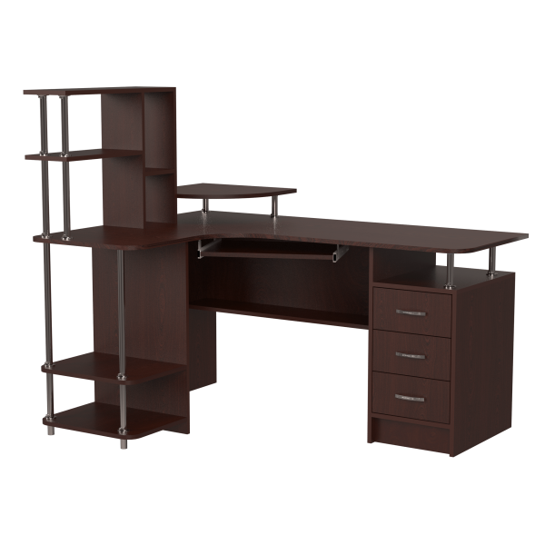 | Особливості | надбудова, блок шухляд, полиці, полиця під клавіатуру, полиця для колонок, полиця для монітора, металеві хромовані стійки, кутовий |
